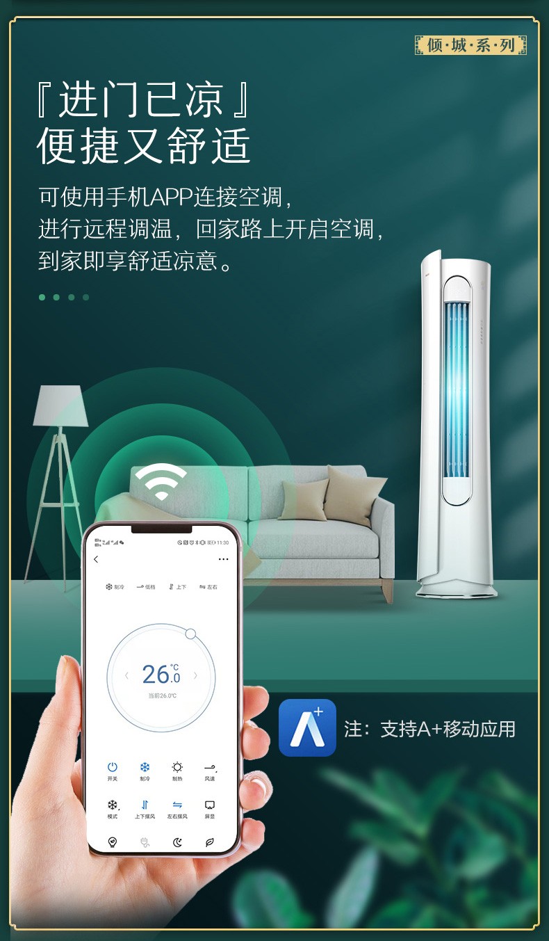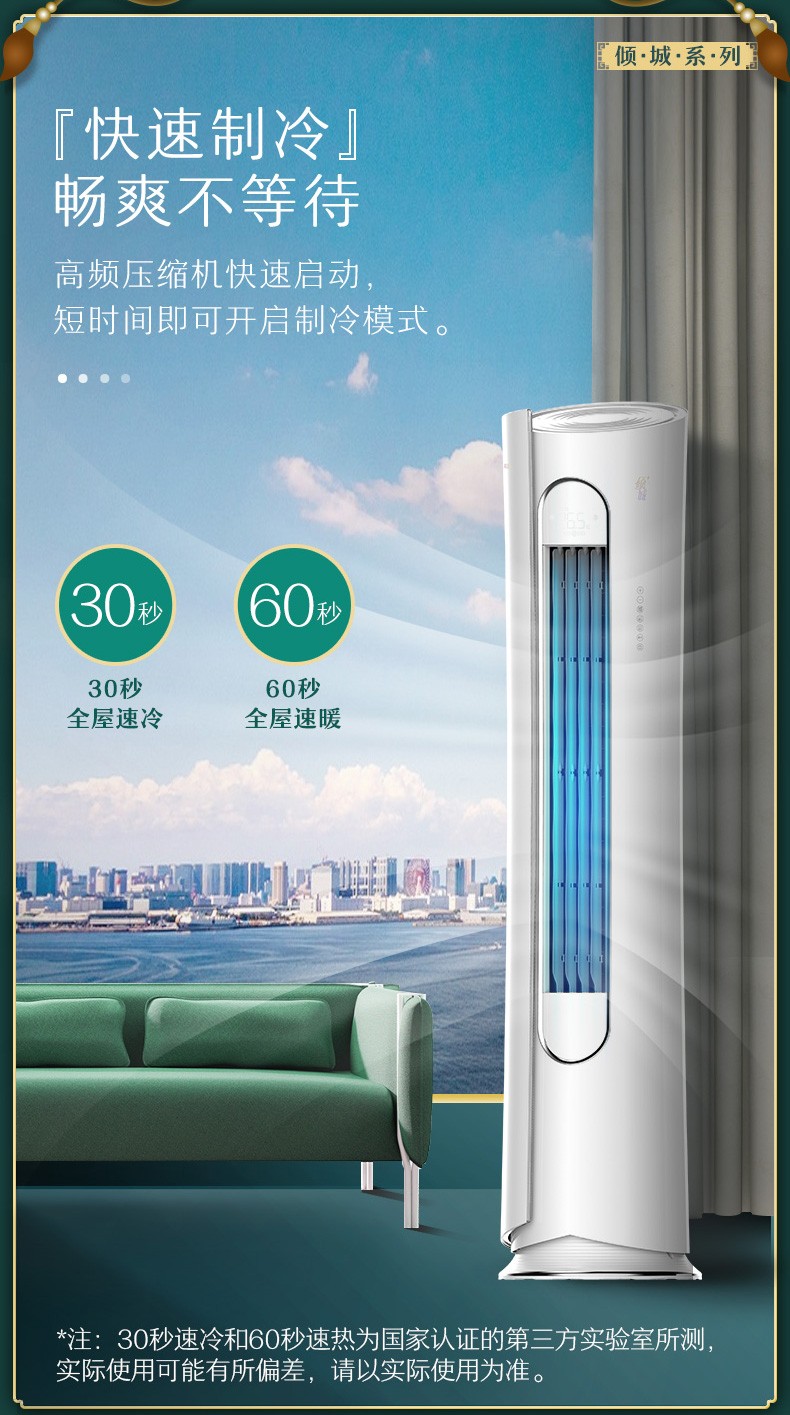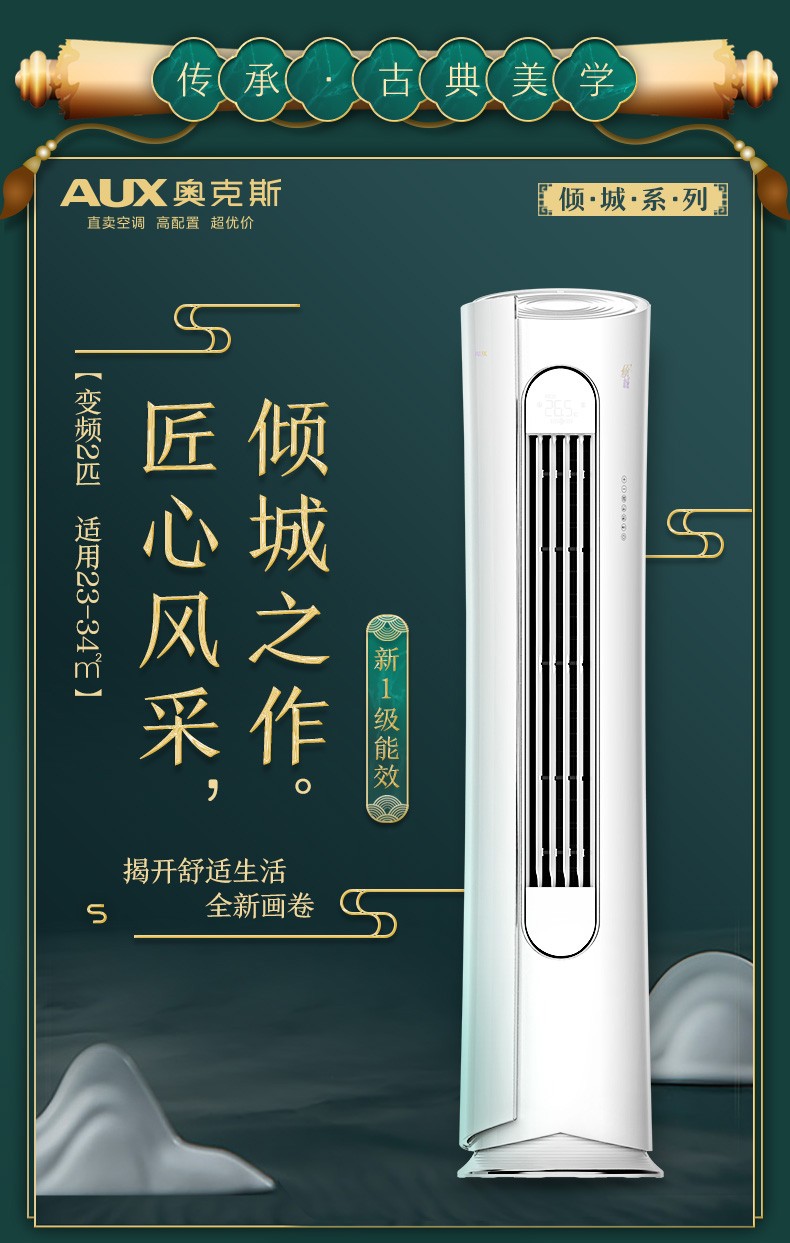 奥克斯(AUX)2匹新一级能效变频冷暖 30秒速冷百档风速 APP控制圆柱立柜式客厅空调柜机 倾城 KFR-51LW/BpR3NHA2(B1)