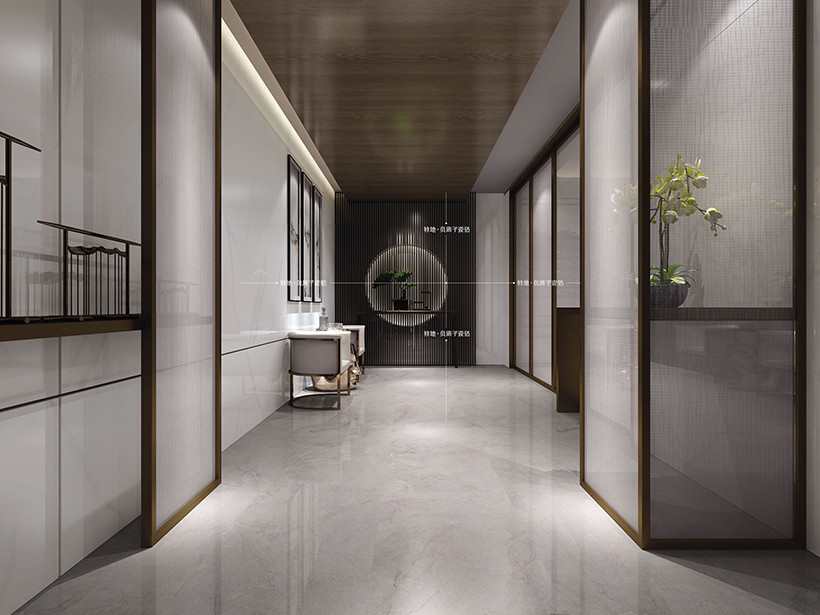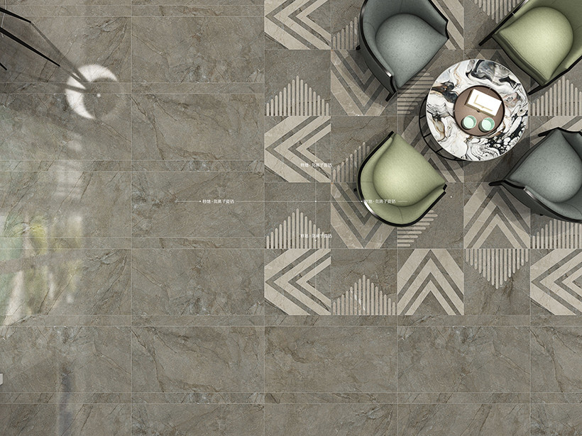 精美复刻天然石材质感,色彩简约,灵动大气,棕灰色的纹理自然揉合,纹路分布均匀,大面积铺贴,自由随性而又大气张扬,空间感十足。