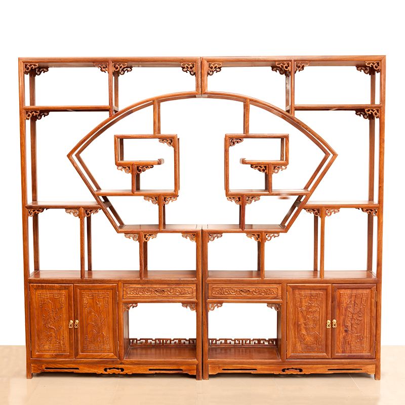 红木家具 实木家具 红木沙发 红木餐桌 红木床 刺猬紫檀 非洲花梨 缅甸花梨扇形博古架