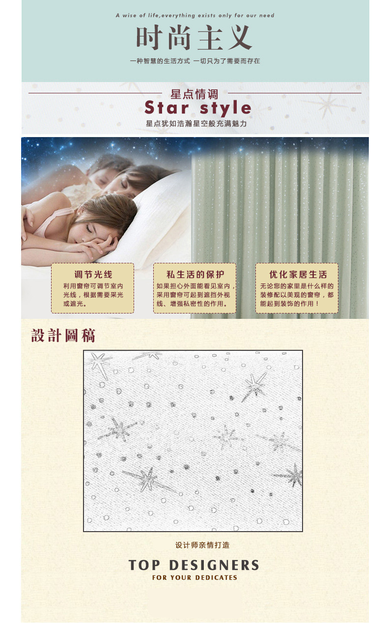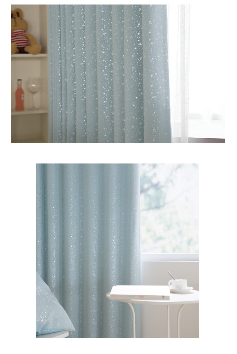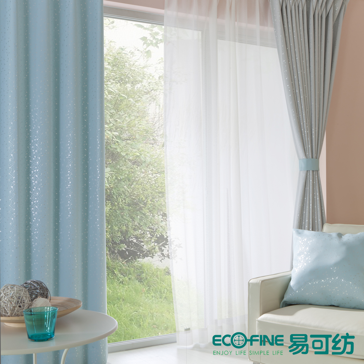 易可纺 蓝色星星窗帘布儿童房窗帘成品