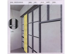 安装硅酸钙板:硅酸钙板板应竖向铺设,长边接缝应落在竖向龙骨上,双面板材安装,内、外两层板应错缝排列,接缝不应落在同一根龙骨上,有保温、吸声等要求,先安装一侧板,后进行填充处理(采用玻璃棉),再封另一侧板,螺钉周边间距≤200mm,中间≤300mm,螺钉距板边距离15-20mm,硅酸钙板离地面10mm,最后进行接缝处理。