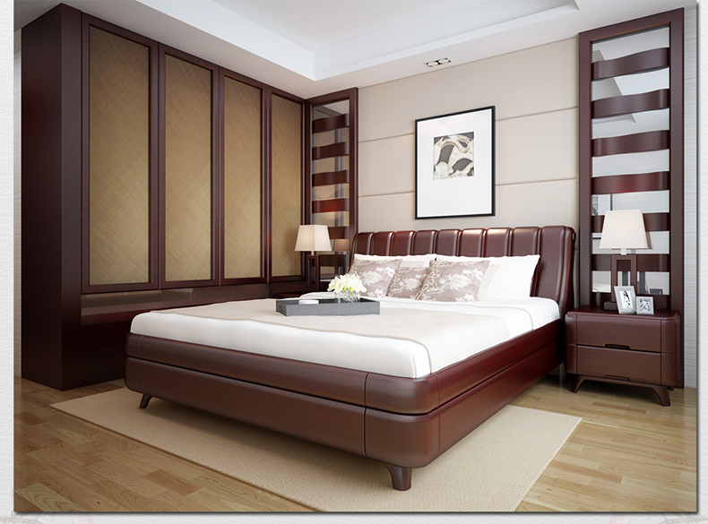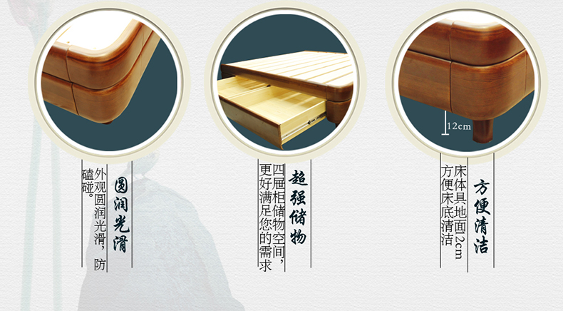 双叶家具 实木中式现代大气储物气压卧室双人床