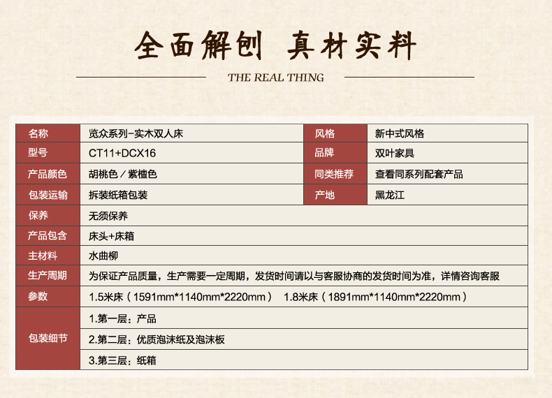 双叶家具 实木床抽屉可储物床1.5米1.8米水曲柳 现代中式卧室家具