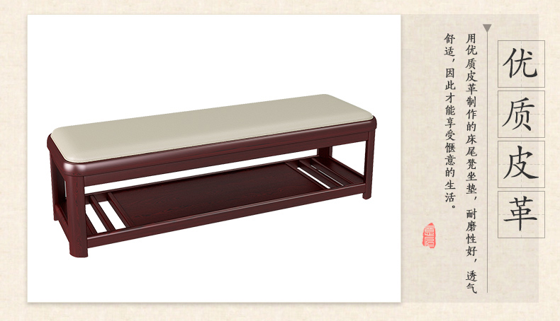 双叶家具览众系列 水曲柳实木床尾凳 现代中式真皮实木长凳