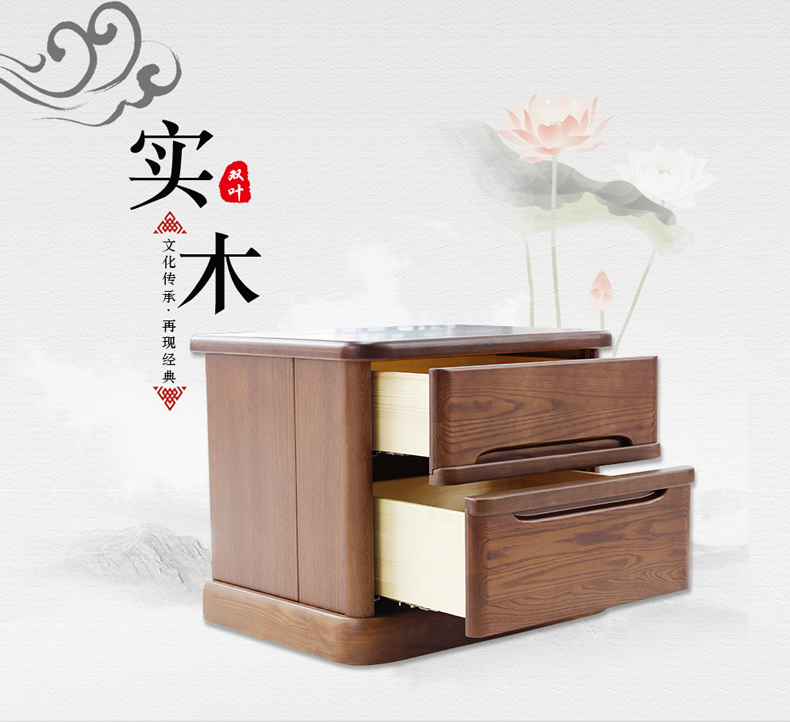 双叶家具 实木中式现代 储物斗柜卧室置物整理收纳带抽屉床头柜