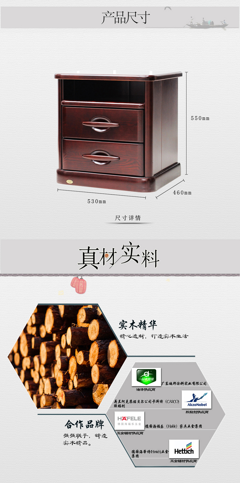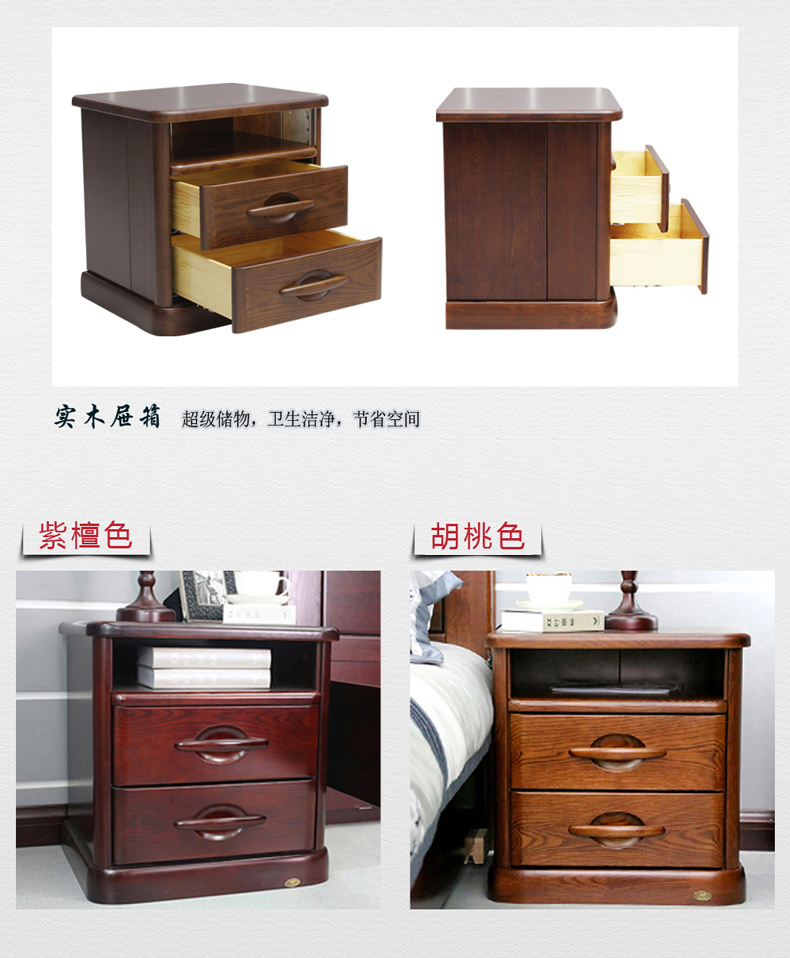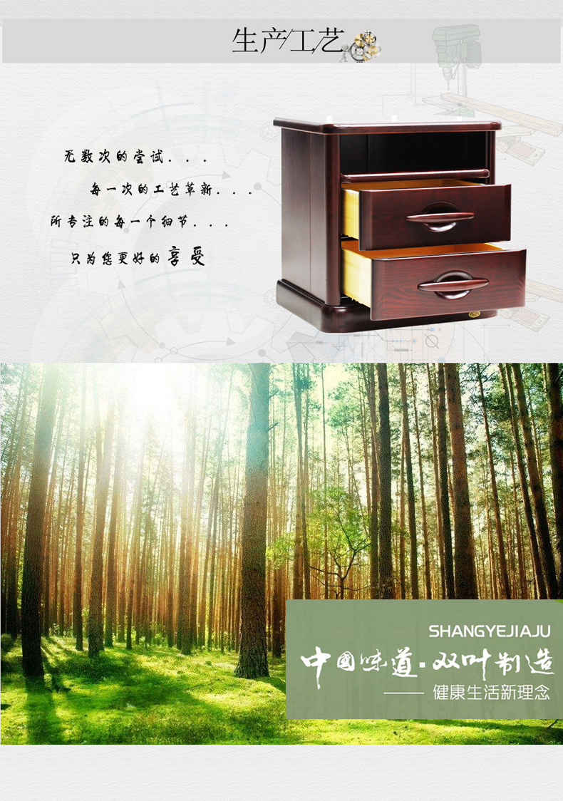 双叶家具 实木中式现代 带抽屉 可储物卧室床头柜