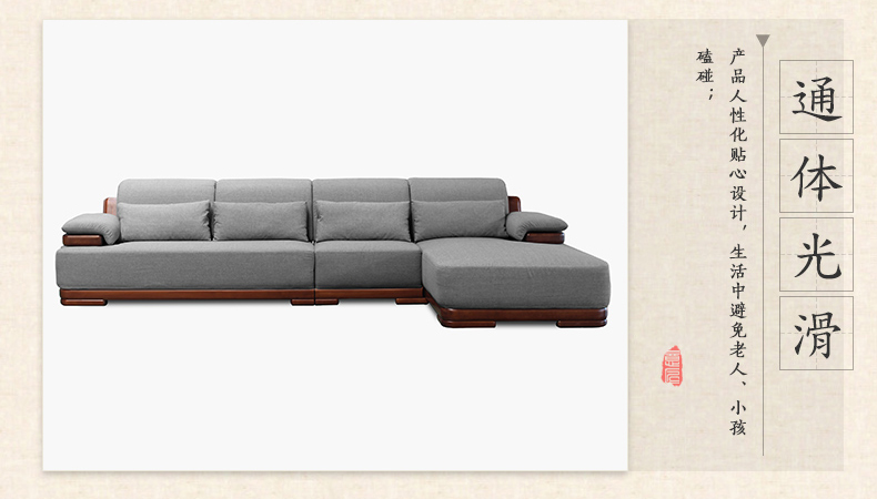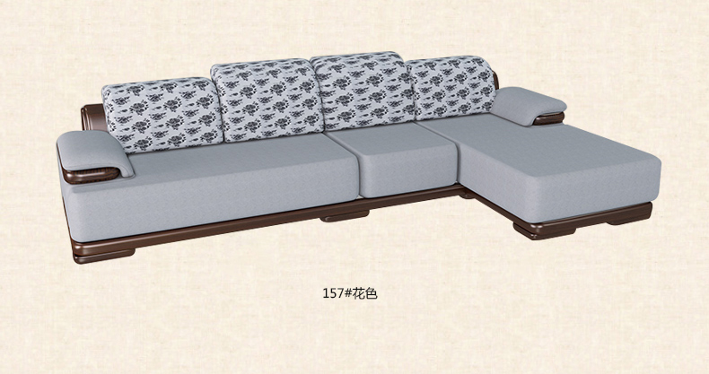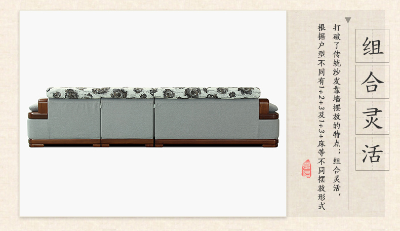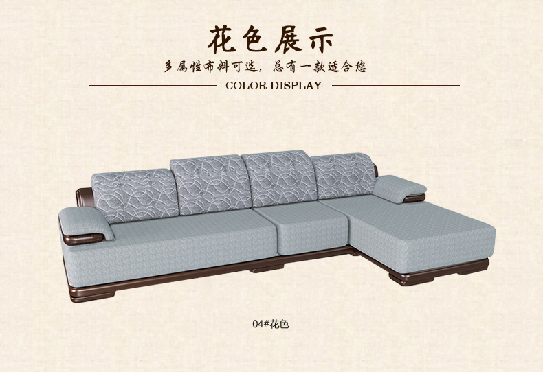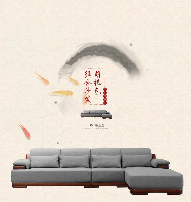 双叶实木客厅家具 实木沙发布艺沙发水曲柳木现代中式沙发贵妃榻