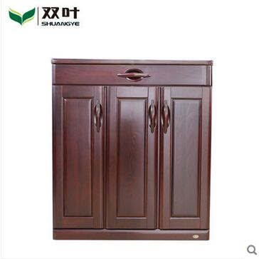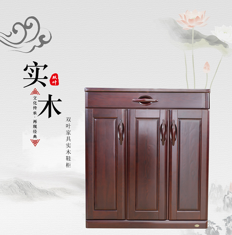双叶家具 实木中式三门鞋柜水曲柳木 入户门鞋柜置物柜实木鞋架