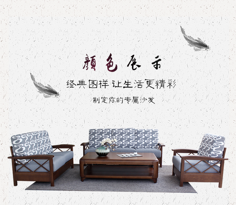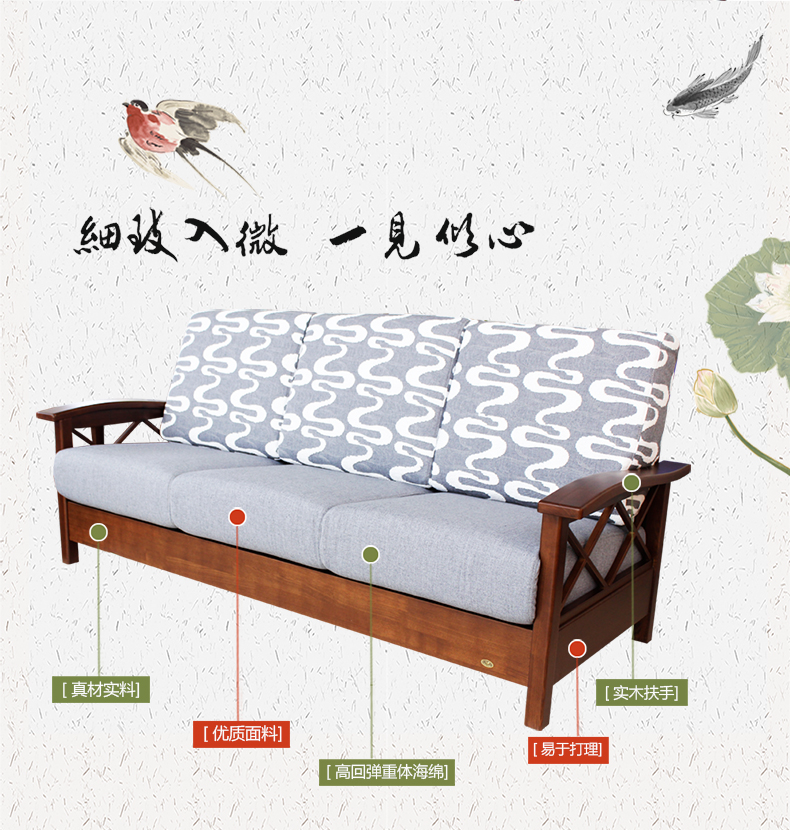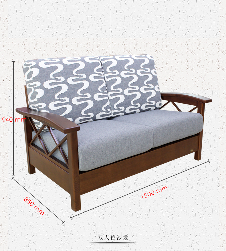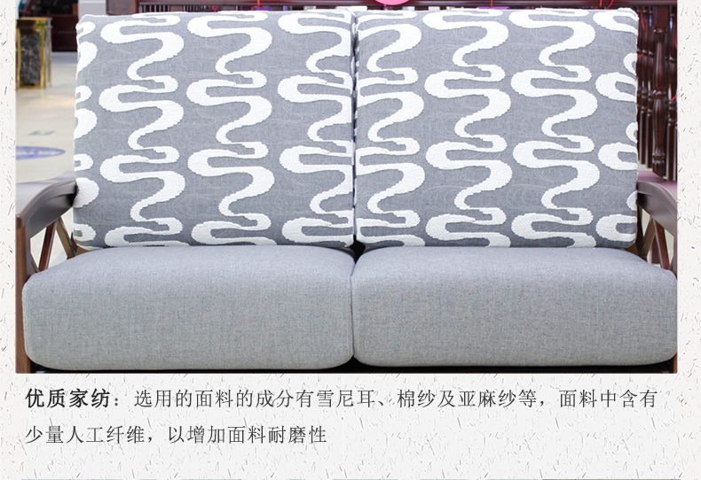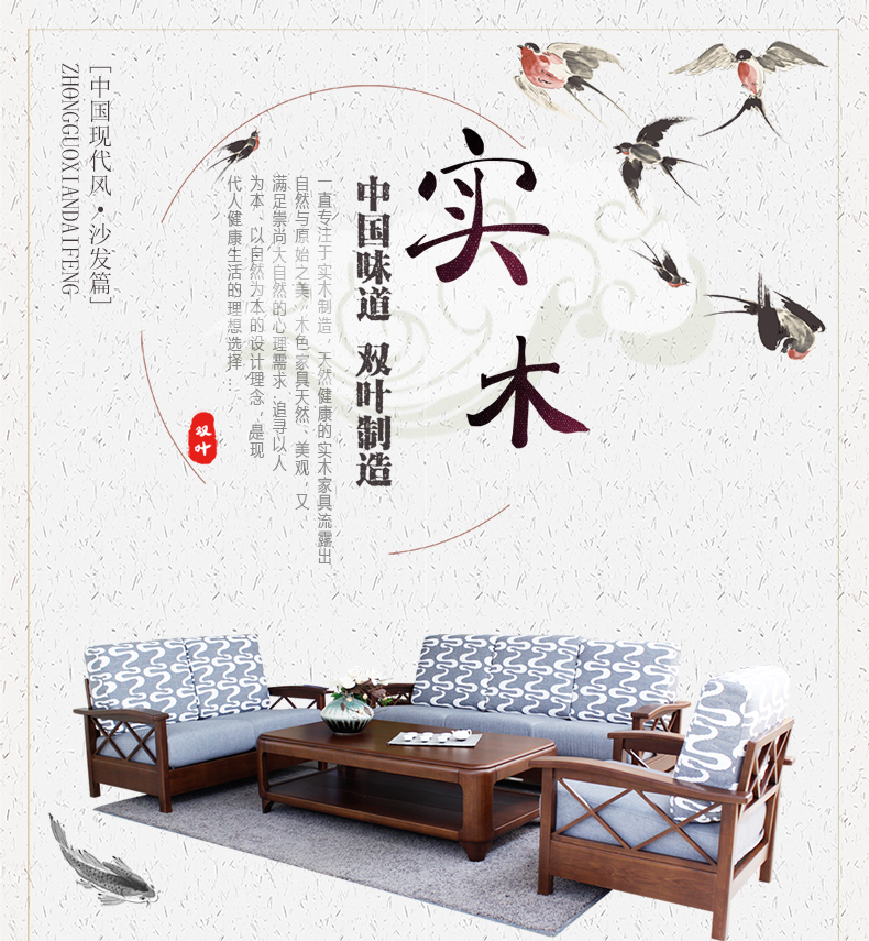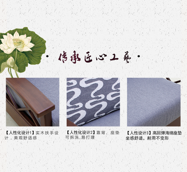 双叶家具 实木布艺沙发客厅家具简约现代中式沙发二人三人可组合