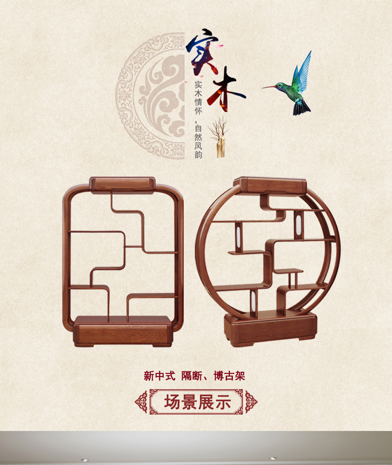 双叶家具 新中式实木 隔断 实木博古架 多宝阁陈列装饰设计