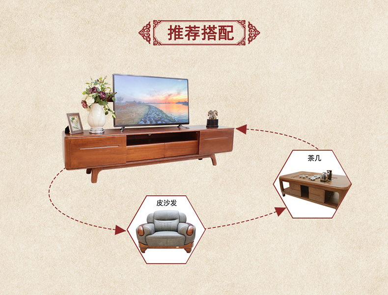 双叶家具 现代中式实木家具客厅电视柜带抽屉可储物电视柜水曲柳