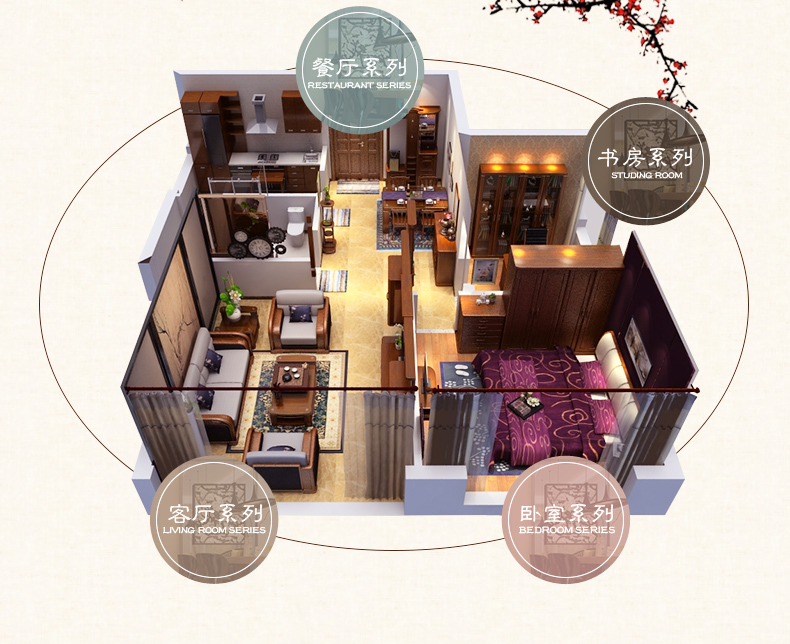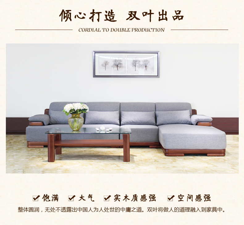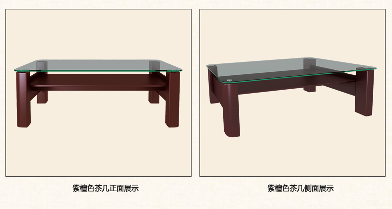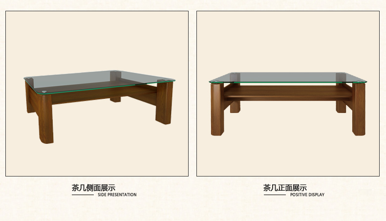 双叶家具 览众系列实木茶几钢化玻璃长方几 客厅家具玻璃茶几实木