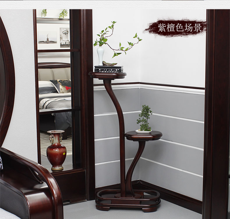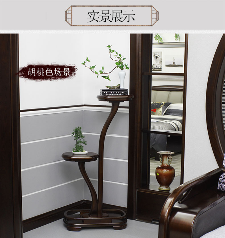 双叶家具 实木中式现代花架 水曲柳木花盆置物架