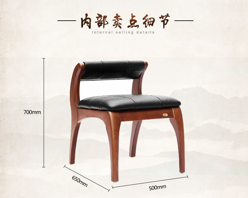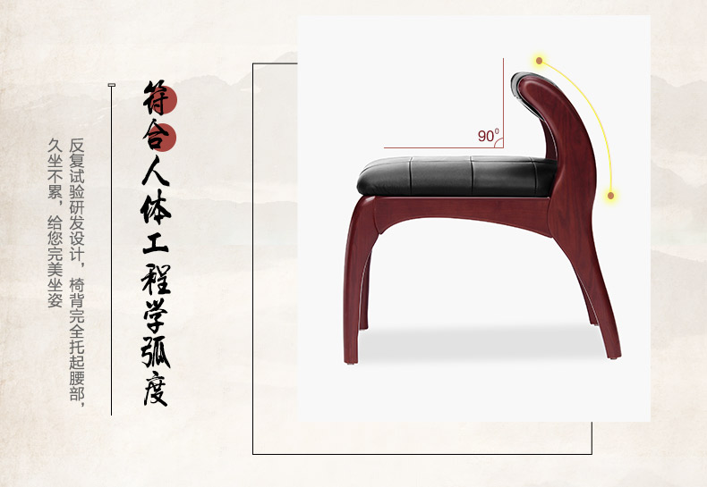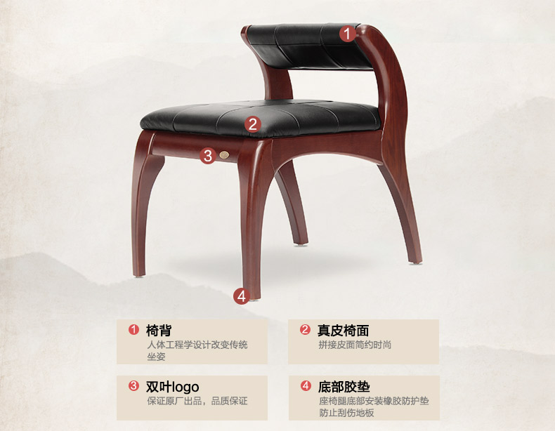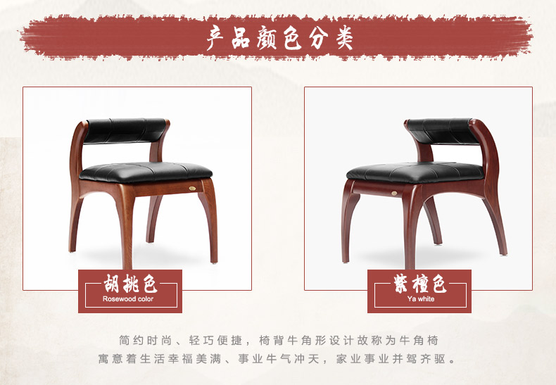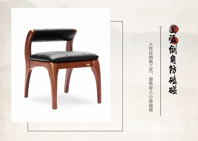 双叶家具真皮实木餐椅 水曲柳餐厅中式家具矫正坐姿椅子牛角椅