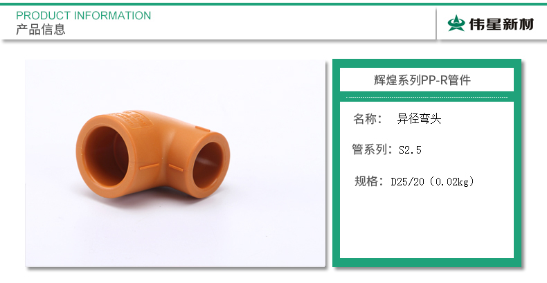 伟星PPR 异径弯头 25×20 6分转4分弯头
