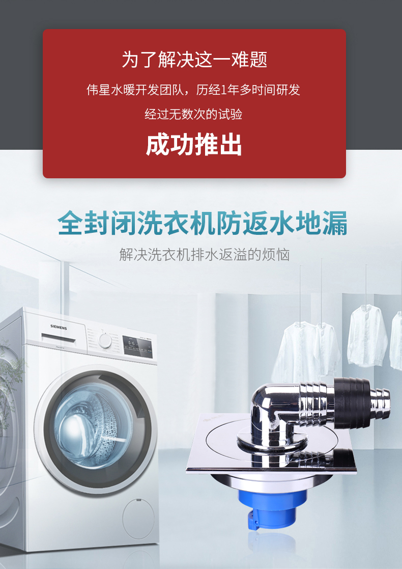伟星 全封闭式洗衣机地漏 防虫防臭