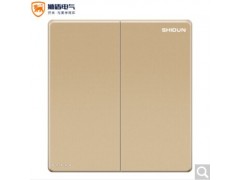 狮盾无框大面板香槟金色开关插座 二开多控开关
